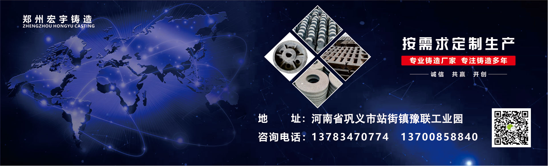 鄭州宏宇鑄造位于河南省鄭州鞏義市是鑄造件廠家,主要生產生鐵機械配件、耐磨襯板、耐磨錘頭、合金耐磨錘頭、制砂機錘頭、鑄鋼件、高鉻合金鑄件、球墨鑄鐵件、消失模工藝鑄件、砂型工藝鑄件等!來樣即可加工。 我們技術力量雄厚、設備齊全,目前有高級技師數(shù)名,技術人員數(shù)十名,能滿足客戶的不同需求,來圖來樣均可生產,而且為了確保產品質量進一步得到完善和提高, 確保供貨及時達到客戶的滿意,我們采用優(yōu)質原材料及先進的制造工藝!
